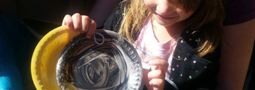 While mostly dangerous and scary, some of the weather was fun. I joined my sister, nieces, great-nieces and nephew to experience the solar eclipse near Olympia Washington. While it wasn’t a complete eclipse, it was near enough that we were able to feel the drop in temperature, experience the gradual sunlight dimming, hear the silence as birds went to their roosts, see shadows alter as they reflected the crescent shape of the eclipse, and feel the breeze as the moon moved across the sun in the late morning hours of Monday, August 21, 2017. We wore our commemorative solar glasses; did an eclipse art project involving two plates, hole punches, finger paint and a bit of yarn; ate our eggs sunnyside up with blueberry pancakes (big pancake on the bottom, fried egg in middle, yolk-sized pancake on top) for breakfast; and enjoyed banana slices topped with half purple grapes, Starburst and Milky Way candies as our eclipse-watching snacks.